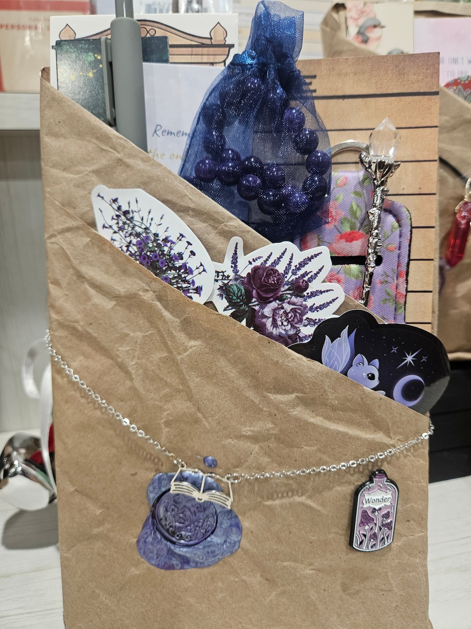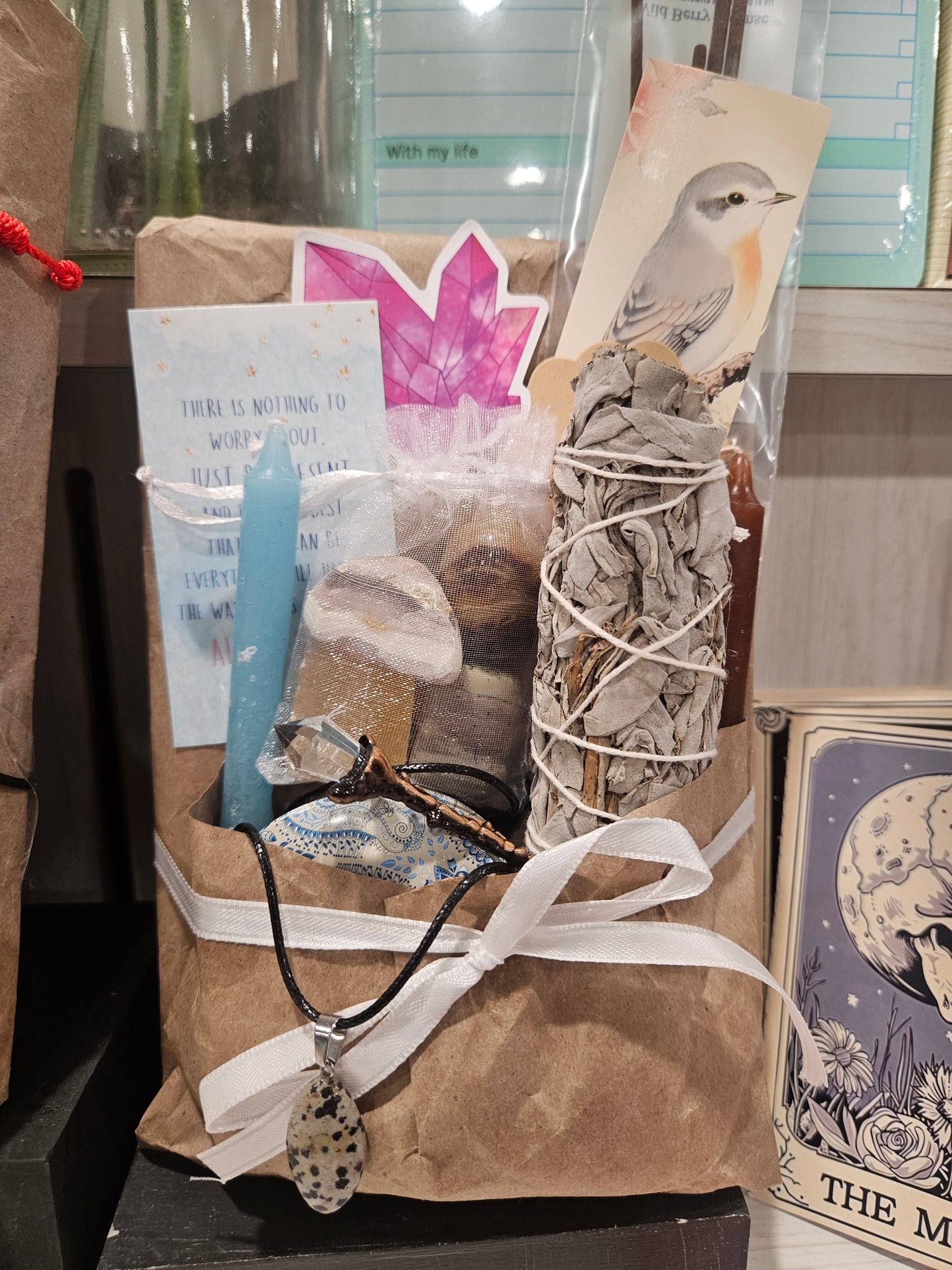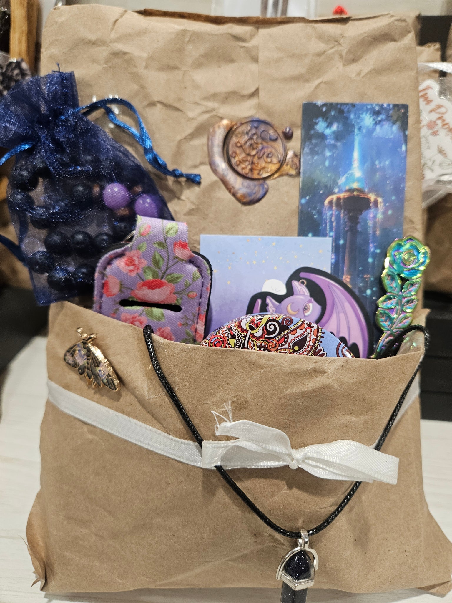 It's all tied together with twine or ribbon for that cozy, handmade feel. Unwrap the mystery, fall in love with a new story, and enjoy the little accessories that make reading even more fun!